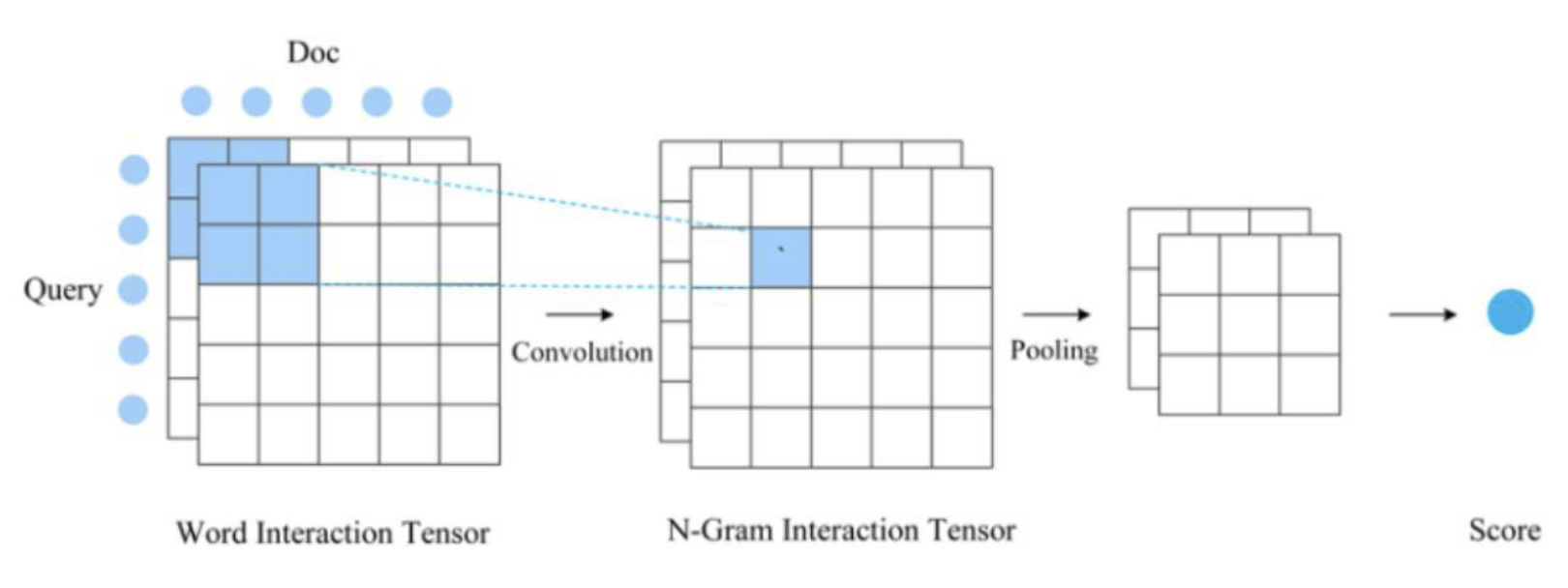 该方式更强调待匹配两端更充分的交互,以及交互基础上的匹配。所以不会在表示层将文本转换成的一个整体表示向量,而一般会保留和词位置相对应的一组表示向量。例如: